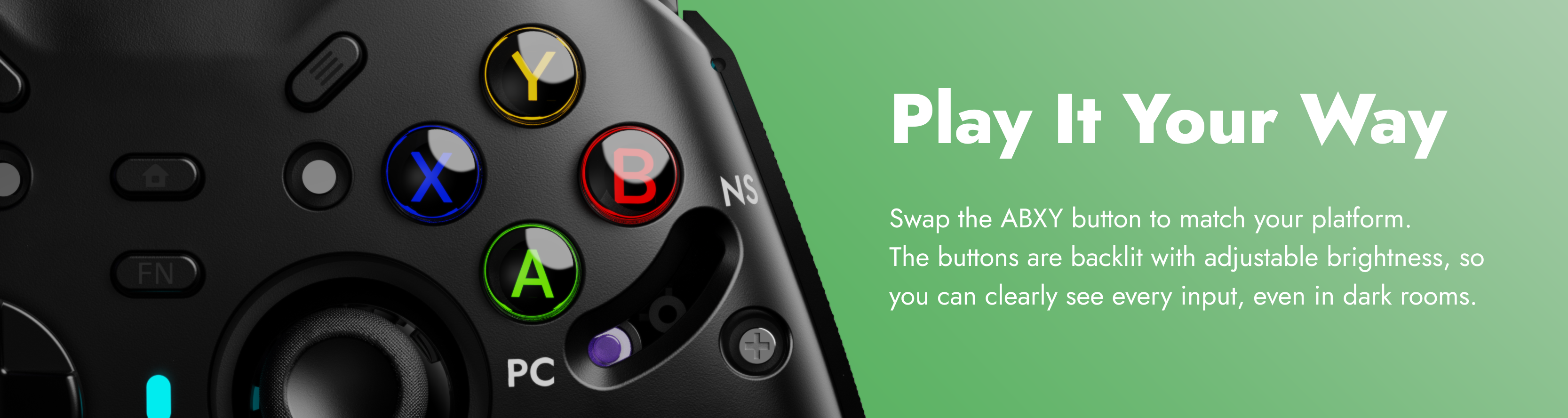 - Backlit ABXY Buttons: Illuminated buttons improve visibility in low-light setups and enhance visual appeal.
