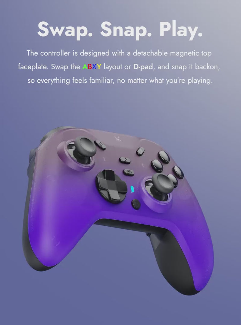 - Swappable Layouts & D-Pads: Interchangeable Xbox/Nintendo ABXY layouts and dual D-pad styles to match platform and playstyle.