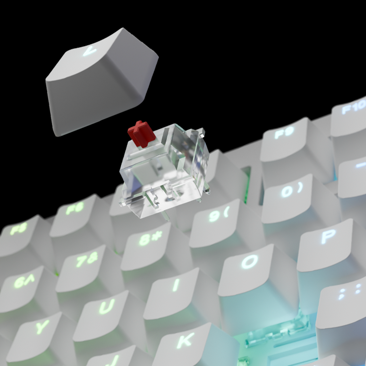 - Double-Shot ABS Keycaps (Cherry Profile): Durable keycaps with legends that won't fade, offering shine-through support for vibrant RGB effects.