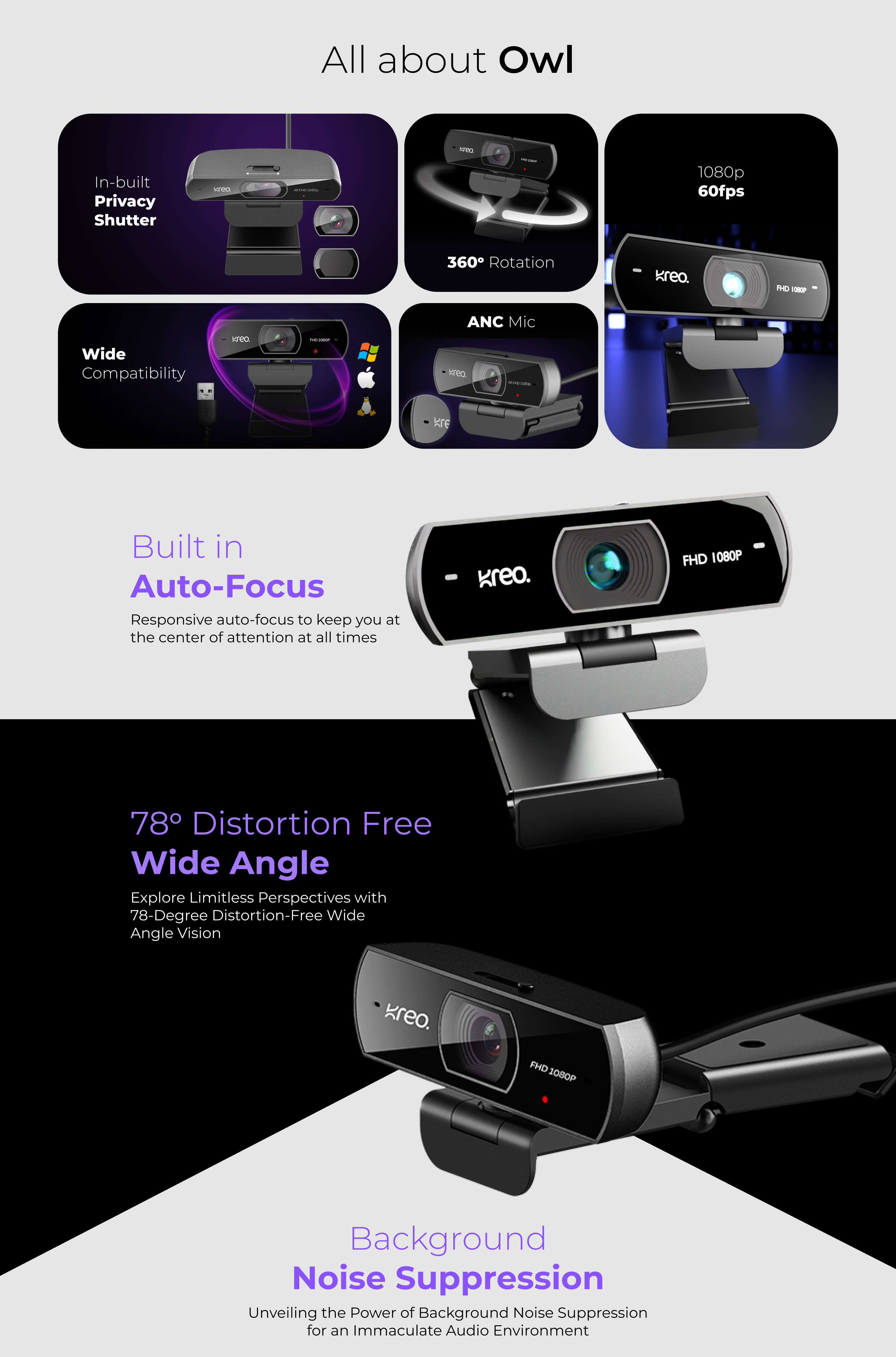The Full HD Owl delivers crisp 1080p video at 60fps, providing smooth, professional-quality streams perfect for content creation, gaming streams, and video calls. The high frame rate ensures fluid motion capture for active streamers.